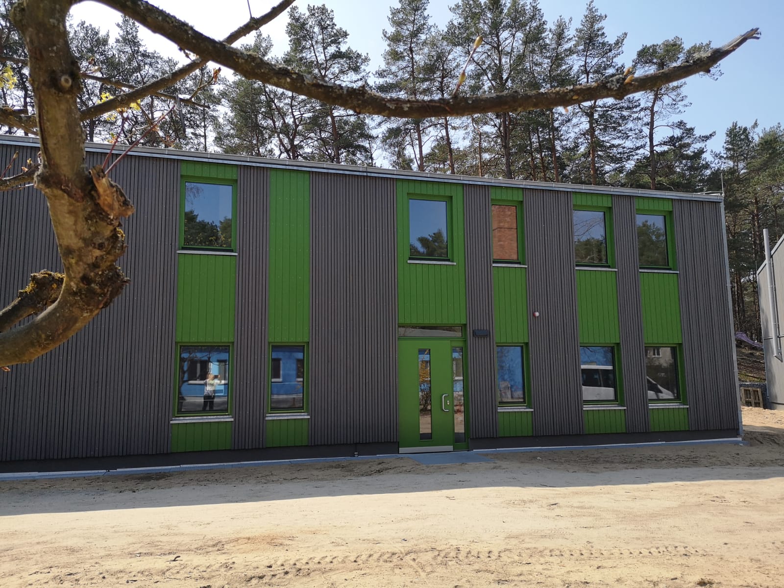 Neubau eines Seminarhauses mit zwei Beherbergungsgebäuden in Storkow (Brandenburg) für die Ev. Jugendbildungs- und Begegnungsstätte Hirschluch Nach gut einem Jahr Baustelle sind die Arbeiten nun abgeschlossen und das Seminarhaus „Der silberne Mond“ sowie die Beherbergungsgebäude „Waldhütte“ und „Fuchsbau“ bezugsfertig. Die Firma Kurt Buck hat die Arbeiten in den Bereichen Beton-/Stahlbetonarbeiten, Holzrahmenbau, Fenster & Türen, Insekten- und Sonnenschutz sowie Trennwandsysteme und Trockenbau ausgeführt. Die Gewerke Gerüstbau, Stahlbau, Dachdecker- und Dachklempnerarbeiten wurden von uns koordiniert. Hier ein kleiner Teil dessen, was von der Firma Kurt Buck verbaut wurde : Im Seminarhaus 33 Fenster, 24 Innen- und Rauchschutztüren, eine Haus- und Lagerraumtür, insgesamt 59 m² mobile schalldämmende Trennwand, 1 automatische 2-flg. Glasschiebetür 40 m² Pfosten-Riegel-Glassystem 1400 m² Gipsfaserplatten Wände (als 2. Lage) 120 m² Gipskartondecke abgehängt 427 m² Holzrahmenkonstruktion aus KVH inkl. Holzfassade 100 m² Holzständerkonstruktion für leichte Innenwände aus KVH inkl. Beplankung 465 m² Brettsperrholzdecke 465 m² Dachkonstruktion KVH / BSH 465 m² Dachschalung aus OSB Je Beherbergungsgebäude 28 Fenster, 2 Fluchttüren, 34 Innen- und Rauchschutztüren, je eine Haus- und Lagerraumtür, 11 Feuchtraumtüren 350 m² Gipsfaserplatten Wände (als 2. Lage) 210 m² Gipskartondecke abgehängt 160 m² Gipsplatten-Montagewand 75 m² Gipskarton-Installationswände 260 m² Gipsplattenbekleidung auf Sparrenunterseiten sowie Abseiten 332 m² Holzrahmenkonstruktion aus KVH inkl. Holzfassade 355 m² Holzständerkonstruktion für leichte Innenwände aus KVH inkl. Beplankung 215 m² Brettsperrholzdecke 240 m² Dachkonstruktion KVH inkl. Dämmung, Folie, OSB Im Seminarhaus befinden sich im Erdgeschoss sechs Gruppenräume von 20 bis 50 m² sowie ein Freizeitraum. Im Obergeschoss ist ein Saal auf 240 m² Fläche, mit Platz für bis zu 150 Gäste entstanden. Die den Beherbergungsgebäuden befinden sich je 32 Schlafplätze, ebenfalls verteilt auf zwei Ebenen sowie je zwei Gruppenräume. Weitere Informationen zu den Häusern finden Sie auf der Homepage der Ev. Jugendbildungs- und Begegnungsstätte: https://www.jusev.de/jugendbegegnungsstaette